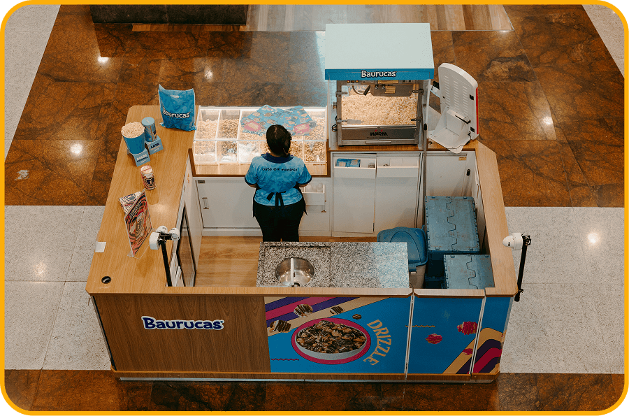 Na Baurucas, criamos receitas exclusivas com ingredientes que o mundo inteiro ama: chocolate, caramelo, morango, doce de leite... tudo com uma crocância inconfundível. Unimos a tradição das pipocas americanas com o sabor e criatividade do Brasil. Trabalhamos com sabores fixos, sazonais e colecionáveis — além de parcerias com grandes marcas como Nestlé. Produto que encanta, surpreende e vende.